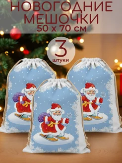 Мешок подарочный новогодний Дед Мороз 50х70 см 3 шт