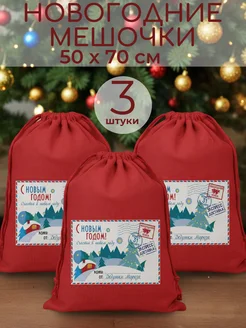 Мешок подарочный новогодний "Открытка" 50х70 см 3 шт