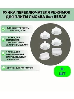 Ручка переключателя режимов плиты 6 шт белая