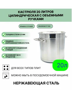 Кастрюля из нержавеющей стали 20 л с объёмными ручками