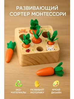 Развивающий деревянный сортер для малышей морковка