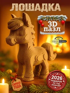 Картонный 3Д конструктор новогодний Лошадка символ года 2026