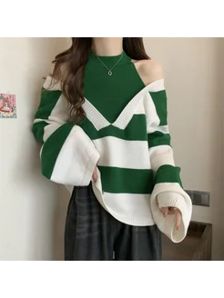 Свитер с открытыми плечами женский в полоску