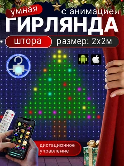 Умная гирлянда штора с пультом и приложением 2х2 RGB