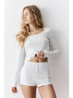 Пижама хлопковая женская лонгслив с шортами