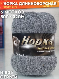 Норка длинноворсная - 6 мотков, цвет 803 серый