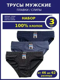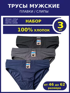 Трусы мужские плавки слипы набор 3шт хлопковые