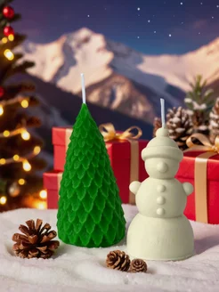 Набор новогодних свечей Ель и Снеговик