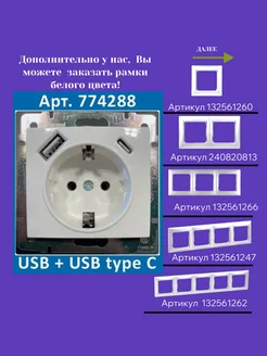 Розетка электрическая USB+TYPE C, цвет- белый, 774288 VALENA