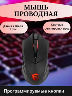 Мышь проводная 4200 dpi, USB Type-A, 6 кнопок черный