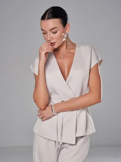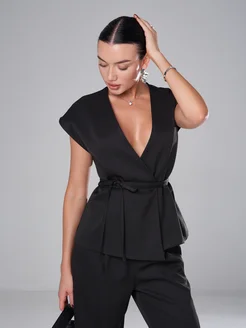 Жилетка костюмная нарядная на запах в стиле кимоно