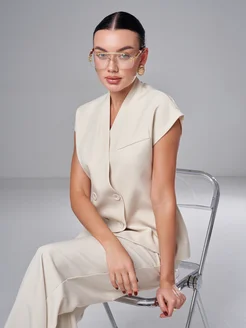 Костюм брючный с жилеткой двойка в стиле кимоно