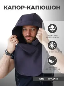 капор мужской, капюшон съёмный, шапка-шарф, манишка, капюшон