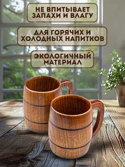 Набор деревянных кружек для пиво и кваса 350 мл, 2 шт