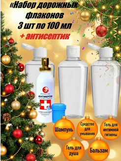 Флаконы дорожные 100 мл 3 шт + антисептик 60 мл