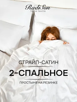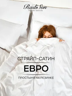 Постельное белье евро на резинке страйп сатин 4 наволочки
