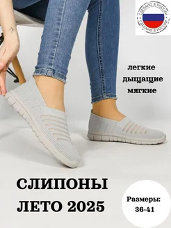 Слипоны летние дышащие текстильные сеточкой без шнурков