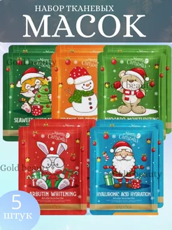 Тканевые маски для лица набор Новогодний 5шт