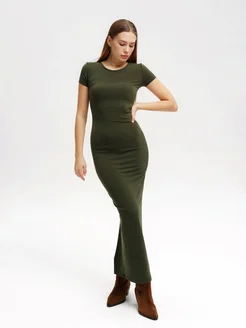 Платье длинное с рукавами макси облегающее трикотажное