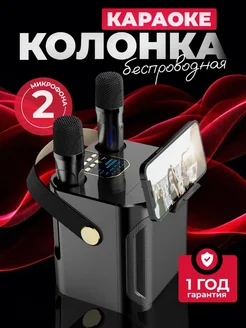 Беспроводная музыкальное караоке колонка с двумя микрофонами