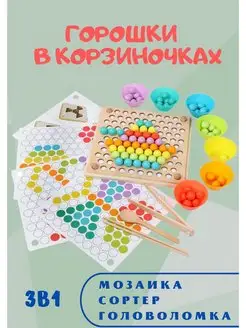 Мозаика сортер детский Цветные горошки. Монтессори 3В1
