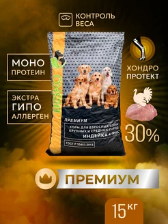 Гипоаллергенный корм для собак сухой 15 кг Премиум Индейка