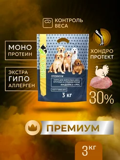 Гипоаллергенный корм для собак сухой 3 кг Премиум Индейка