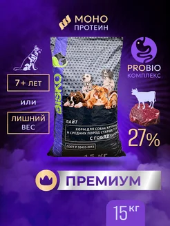 Гипоаллергенный корм для собак сухой 15 кг Лайт Говядина