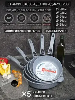 Набор сковород с крышками, антипригарные