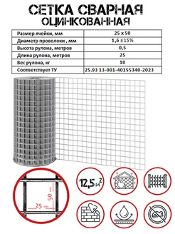 Сетка сварная оцинковання яч 25х50 ф 1,6 0,5х25м (рул12,5м2)