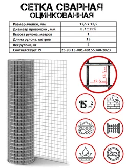 Сетка сварная оц 12,5х12,5 ф.0,7 ТУ 1,0х15м рулон