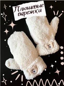 Варежки мягкие плюшевые лапки меховые зимние мишки Тедди