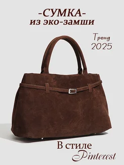Сумка тоут женская замшевая коричневая большая