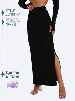 Юбка женская длинная с разрезом большой размер футер