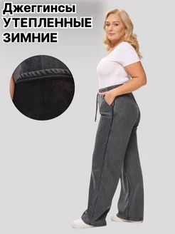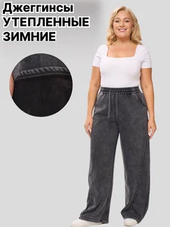 Джеггинсы зимние на меху больших размеров на резинке прямые