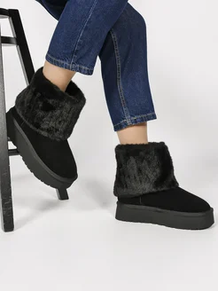 Ботинки зимние натуральная кожа и мех на низком каблуке