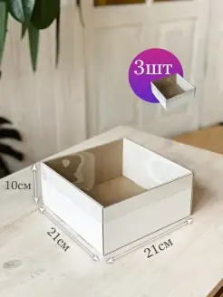 Подарочная коробка с прозрачной крышкой 21х21х10 см 3 шт
