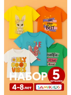 Набор детских футболок с принтом 5 шт