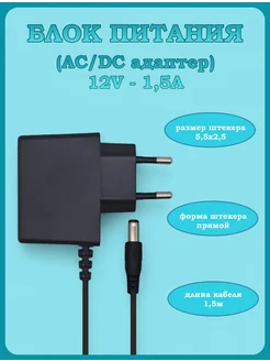 Блок питания 12V - 1,5A (штекер 5,5х2,5мм)