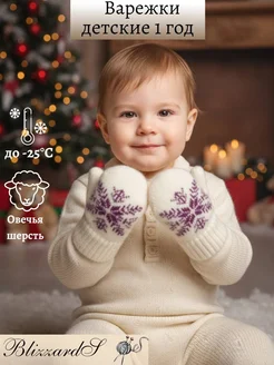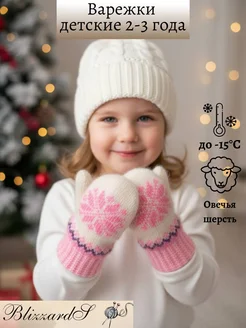 Варежки зимние вязаные шерсть для малышей на 2-3 года