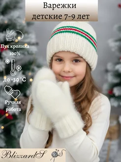 Варежки из пуха кролика пушистые белые на 7-9 лет
