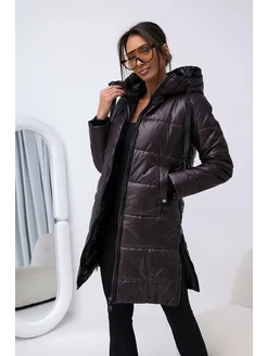 Куртка стеганая длинная с капюшоном, полупальто