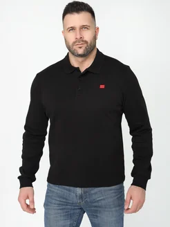 Лонгслив однотонный поло с длинным рукавом на пуговицах