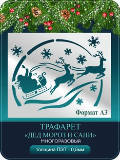 Трафарет новогодний для окон и стен большой Дед мороз Сани