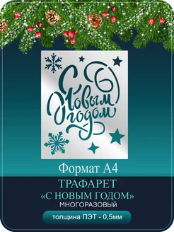 Трафарет новогодний для окон и стен С новым годом снежинки