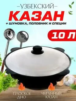 Казан чугунный 10 литров Наманган плоское дно с крышкой