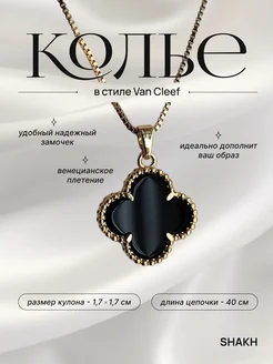 Цепочка на шею женская ван клифф с подвеской клевер черная