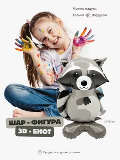 Шар 3D (21'' 53 см) Фигура на подставке, Енот, 1 шт