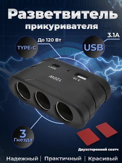 Разветвитель прикуривателя автомобильная зарядка USB type-c