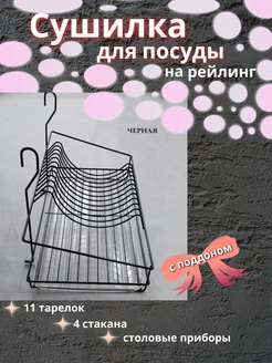 Полка сушилка для посуды на рейлинг подвесная с поддоном